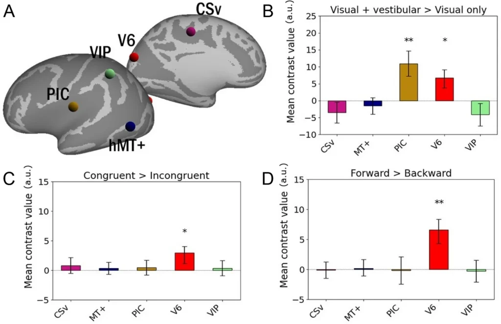An original paper first authored by Sarah Marchand, evidencing the specificity of the cortical area V6 in processing congruent visual and vestibular input for forward self motion.